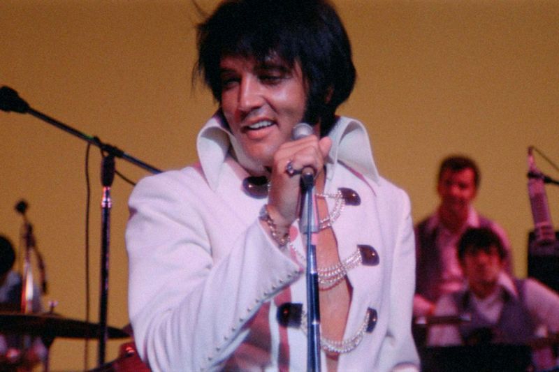 Qui, nulla di tutto ciò. Si segue, come in un eterno incancellabile presente, esclusivamente l’Elvis uomo di spettacolo in azione sul palcoscenico, pedinandolo lungo la serie di concerti che tenne negli anni Settanta, rigorosamente in territorio americano. Perché, ed è paradossale, questa icona che ha sedotto e influenzato generazioni di ogni angolo del mondo non è mai uscita dai confini degli States, se non per il periodo del servizio militare nella Germania Ovest. Ciò anche e soprattutto a causa della protervia del suo manager, il famigerato, ludopatico colonnello Tom Parker, che temeva di perdere il controllo della sua gallina dalle uova d’oro. Nel documentario di Luhrmann entriamo in contatto fisico con Elvis, la macchina da presa gli sta spesso incollata sul volto ancora bellissimo, ne scruta i rivoli di sudore che colano. Apprezziamo il musicista che si esibisce senza risparmio davanti al suo pubblico in estasi e osannante, con punte di isterismo alla Beatles (ed Elvis esegue effettivamente le canzoni del quartetto di Liverpool, che ammise sempre il debito con lui, l’inventore dell’iconografia rock). Ci gustiamo la sua confidenza con la band, amici più che dipendenti, gli scherzi in camerino, il dietro le quinte, lo scrupoloso professionismo nel preparare ogni singolo concerto, l’assoluta dedizione nei confronti del pubblico che va sempre gratificato, le sue discese dal palco per abbracciare e baciare i fan, a rischio dell’incolumità fisica.